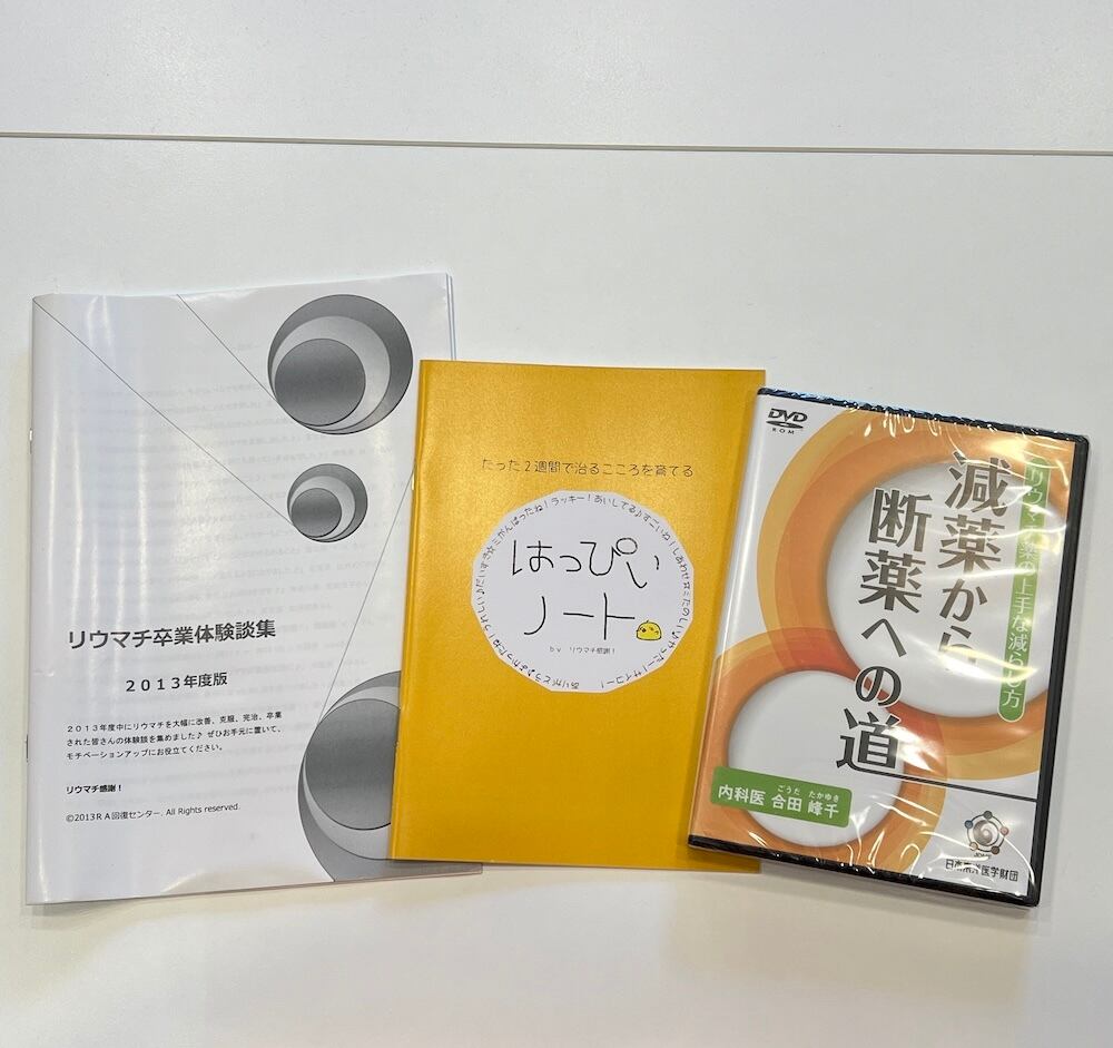DVDと書籍2冊のお値段で、誘導瞑想音源や減薬DVD、さらにリウマチ卒業生のリアルな声を集めた体験談集と実践ノートをプレゼント!!