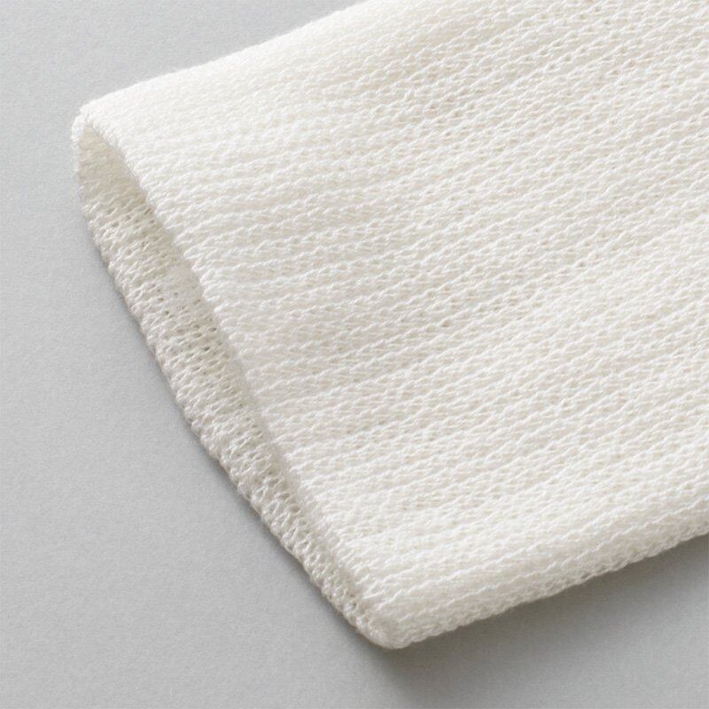 伸縮のため、ポリエステル糸でカバーリングしたポリウレタンゴムが内側に編み込まれています。